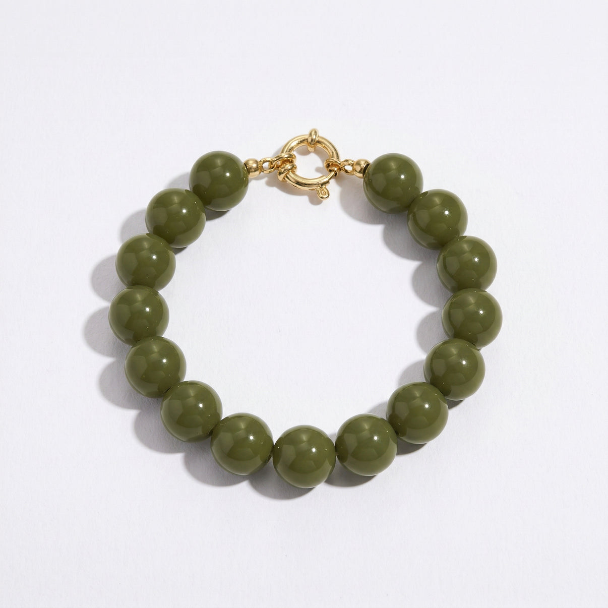 Bracciale con sfere in resina e chiusura in acciaio inox anallergico, lunghezza 20cm . Le sfere sono da 12 mm. I bracciali ì sono venduti senza charm